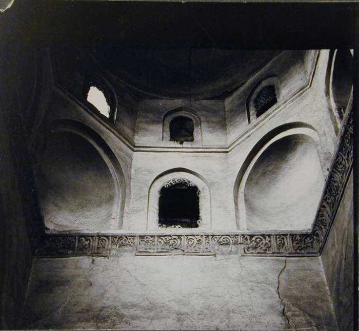 Sopra il mikhrab vi è una piccola cupoletta. Qui è visibile la transizione della base quadrata a quella ottagonale. Questa transizione è ottenuta nella maniera più semplice: attraverso la costrizione di archi negli angoli del quadrato. Questo tipo di transizione prende il nome di tromba d'angolo. Sull'ottagono si aggiunge l'elemento architettonico del tamburo nel quale si aprono le finestre necessarie all'illuminazione. Sopra il tamburo di appoggia la cupola.