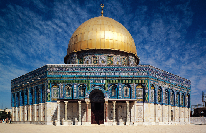 Il più antico monumento islamico datato è la cupola della roccia (691/2) a Gerusalemme (conquistata intorno al 634). I musulmani costruiscono inoltre un altro edificio adiacente: la moschea di al-Aqsa. Accanto a questi edifici religiosi sorgevano i palazzi del potere politico-amministrativo.