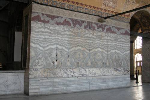 Sono inoltre impiegate lastre di marmo che producono motivi geometrici.